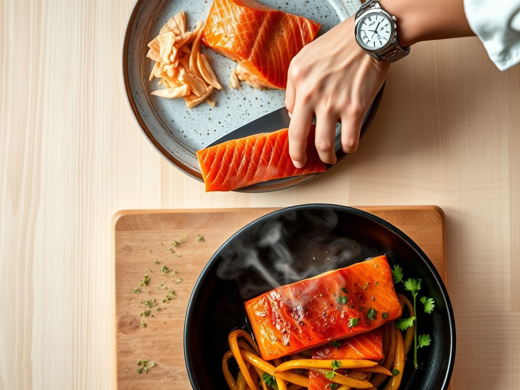 Next is "The Assembly," where you gently fold the salmon to preserve the integrity of the flakes. Finally, "The Finish" involves high-heat searing or a quick broil. Because the salmon is technically pre-cooked, you are only aiming for a temperature of 120 degrees Fahrenheit to ensure the fats are rendered but the proteins remain tender.