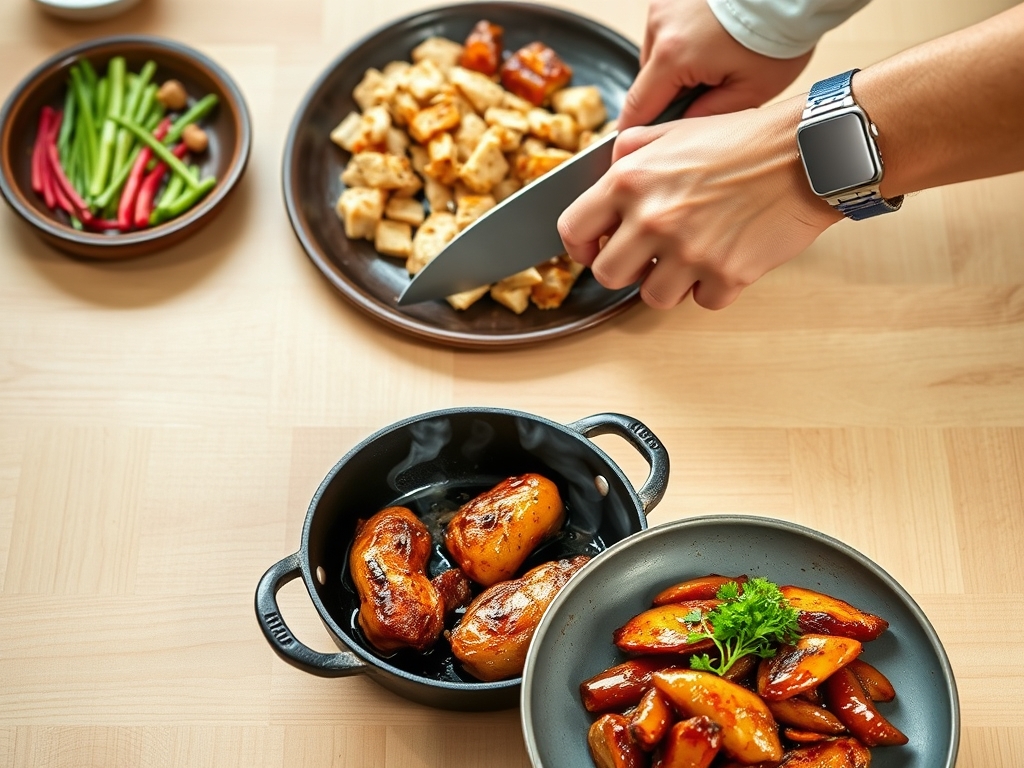 Before we ignite the burner, we must respect the mise-en-place. To achieve the perfect texture, use a digital scale for your liquids to ensure precision. You will need high-quality chicken thighs; the dark meat contains more connective tissue and fat, which will render beautifully and stay succulent under high heat. For the aromatics, reach for a microplane to grate fresh ginger and garlic into a fine paste. This increases the surface area, allowing the essential oils to infuse the sauce instantly without leaving chunky, bitter bits in your glaze.